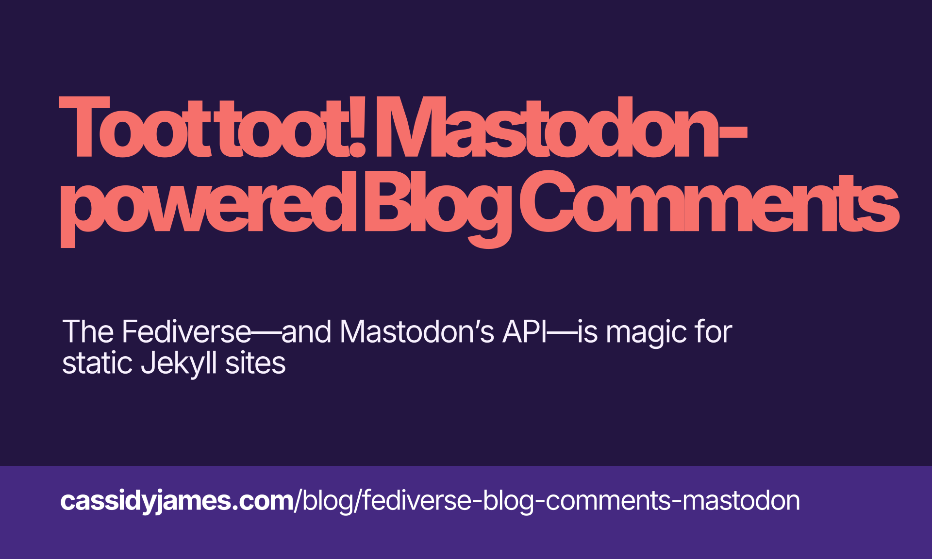 arrow-up188arrow-down1external-linkToot toot! Mastodon-powered Blog Commentscassidyjames.comcanpolat@programming.dev to Fediverse@lemmy.worldEnglish · 2 years agomessage-square8linkfedilink