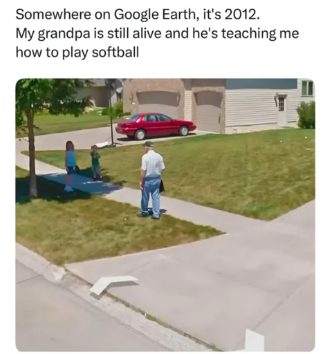 My parents live in a fairly small town. I tried to go looking for my late father in the Streetview pics. There were a few more Streetview photos from the last few years, after his death, but before that, there was just one set from over 10 years ago, and nothing beyond that. Couldn’t see him on Streetview, but saw his car in front of the place where he worked in his spare time.