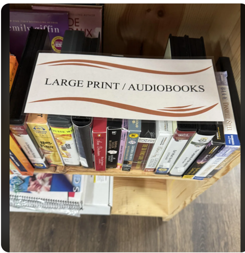 Interesting, I would’ve guessed the sign was just because both are in the “impaired sight” section. When you say they have bigger type, is that just on the case for the audiobook or does the audiobook come with the full text every time?