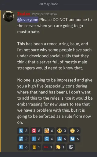 - Sad to see yet another discord mod let the power go to their head - Anyways i’m off to do some masturbation now, wish me luck - Violent or regular masturbation? - Yes