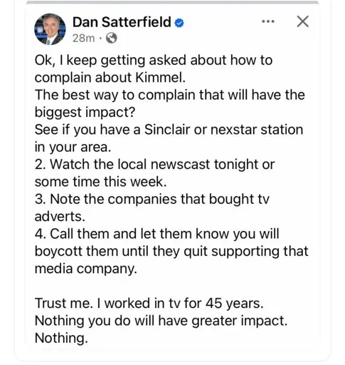 Dan Satterfield is a retired TV meteorologist from Maryland. On Facebook he posted the screenshoted text ( reference: https://www.facebook.com/100044212850201/posts/1334594338024315/ ).