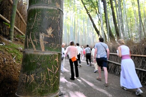 KYOTO—City officials are attempting to combat a return of graffiti marring Arashiyama’s bamboo forest, one of Kyoto’s most beloved tourist destinations.