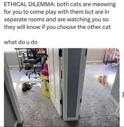 The same thing a cat would do. Look at them both, give a slow blink, then stand up and walk away to go do my own thing.