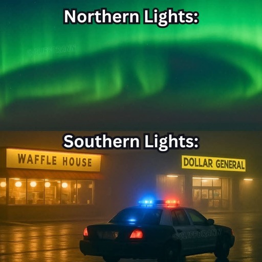 Hate to admit it but while I hate AI images I got a sensible chuckle out of the Waffle House Dollar General in cop car in one scene because it reminds me of what a garbage country I live in.