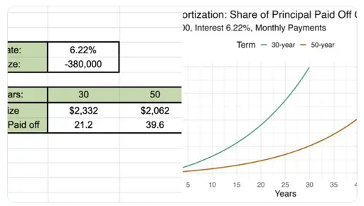 50 year mortgages, compared to a 30 year obligation have more of their payments over their life in interest. That means in a refi more total interest savings. That means even more in fee extraction by middlemen! More critically, it also means much greater pro-cyclical hedging action, and thus an even bigger increase in systemic risk, assuming that there actually was consumer receptivity to this bad idea…