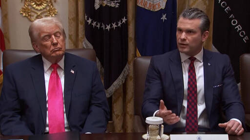 Defense Secretary Pete Hegseth is attempting to distance himself from the U.S. airstrike on September 2 that targeted two shipwrecked men who had survived an earlier U.S. strike on a boat the Pentagon says was carrying drugs, without providing evidence. Legal experts say the strike was likely a war crime. Last week, The Washington Post reported Hegseth had given a verbal order to “kill everybody” on the boat. Hegseth spoke Tuesday during a White House Cabinet meeting.