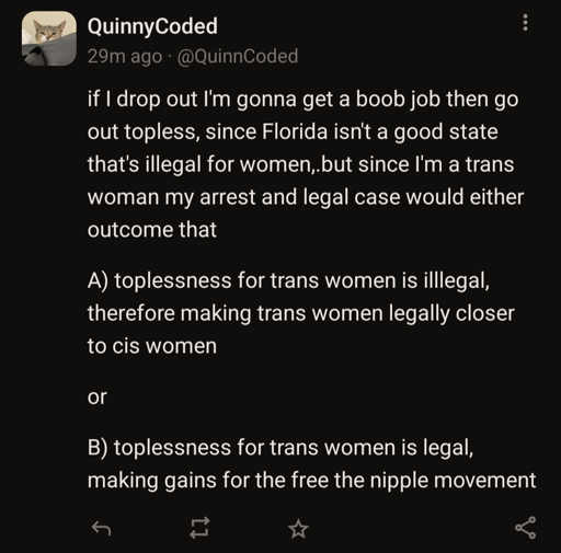 also u/triflingtoad@sh.itjust.works, u/triflingtoad@lemmy.world and @QuinnyCoded@toad.social on mastodon. New account for non-deadname email.