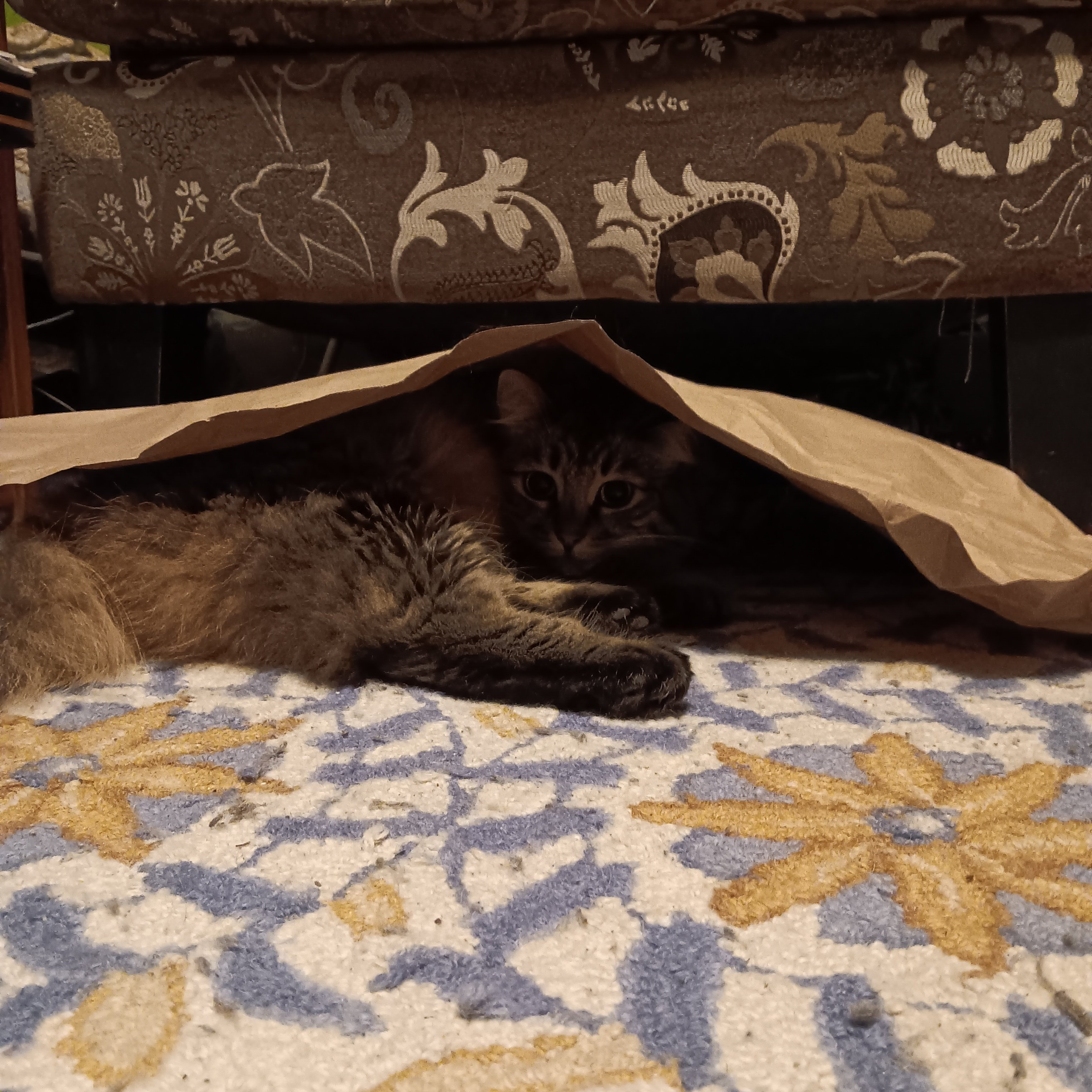 9·11 months agoOn cold nights, my oldest cat demands that I make a “bed tent” with my legs so she can sleep under the blankets without being touched.